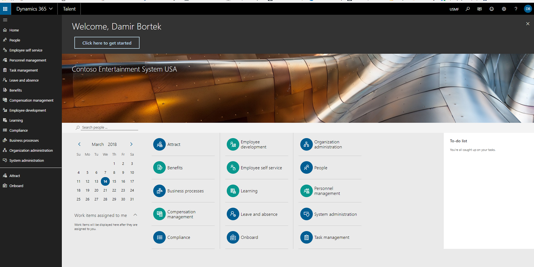 Dynamics 365 fot Talent: Dashboard screen LINK